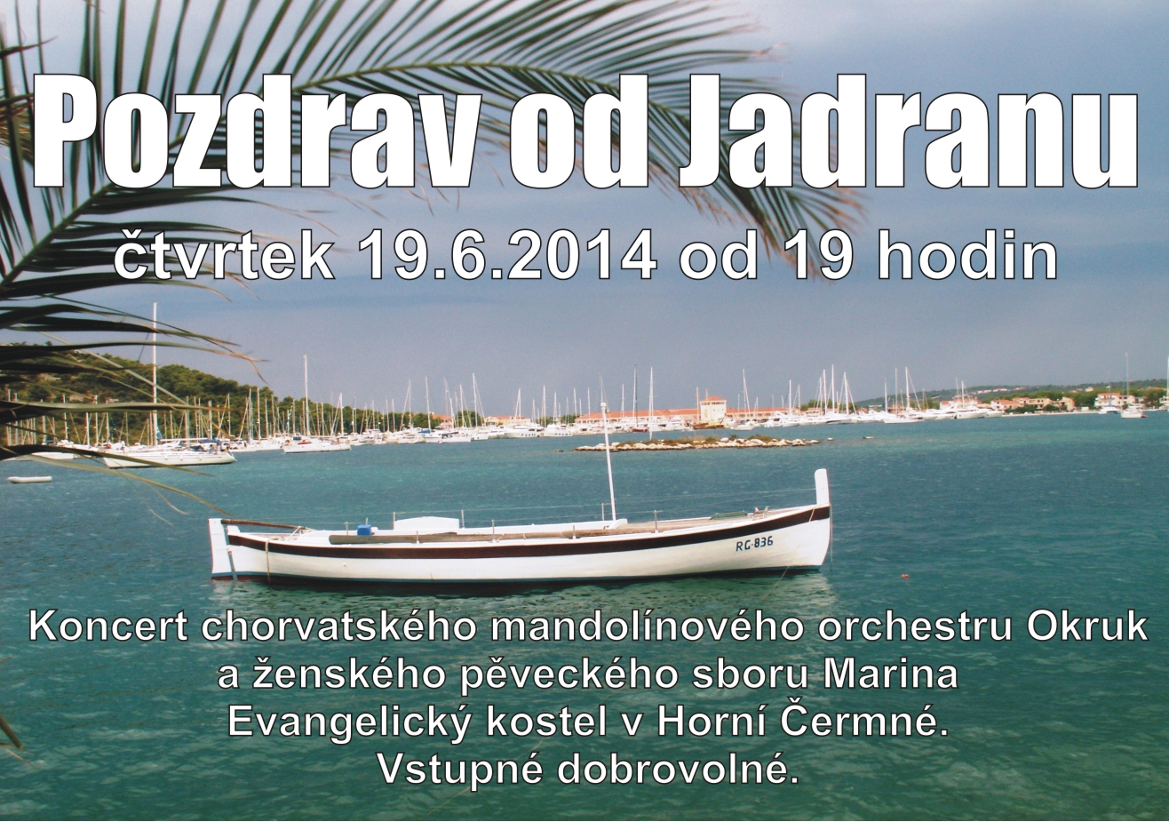 Koncert 19.6.2014 Horní Čermná 17 června, 2014 napsal(a) Jiří Marek - Starosta v kategorii Aktuality Koncert 19.6.2014 Horní Čermná (staženo 253× )