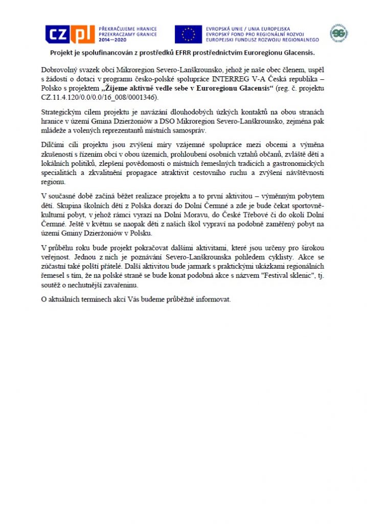 Mikroregion Severo-Lanškrounsko realizuje projekt česko-polské spolupráce