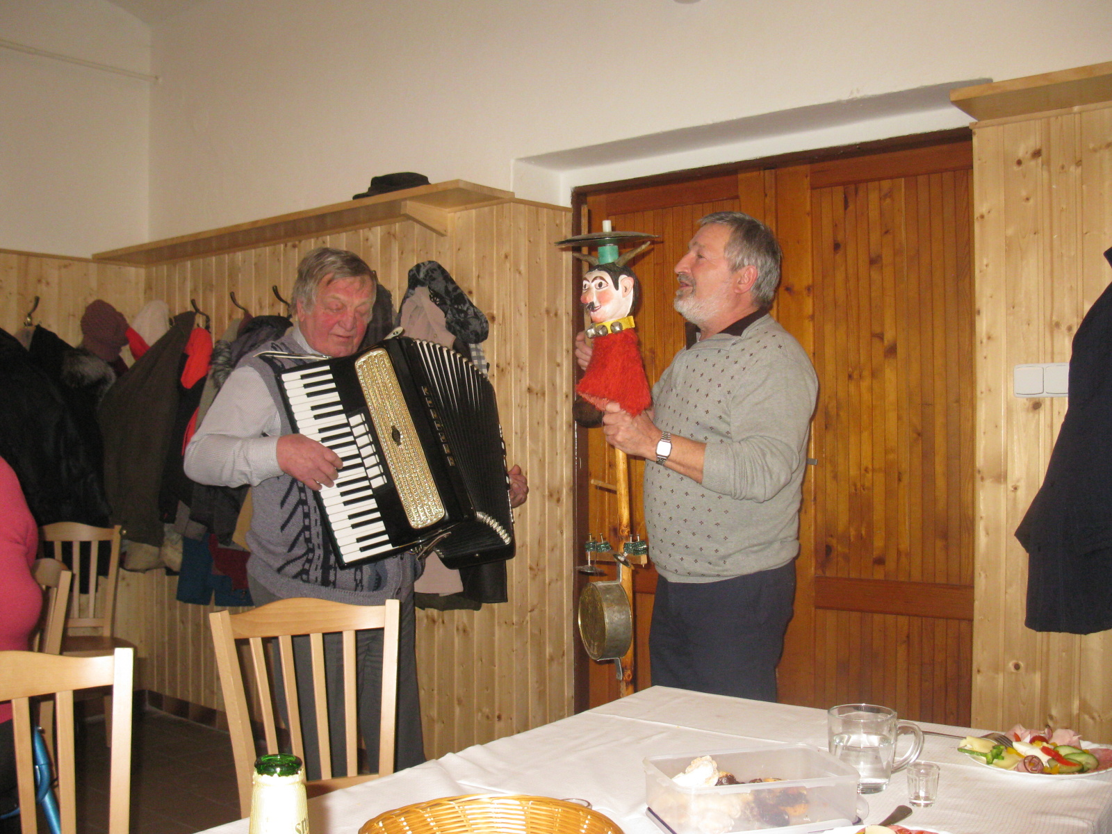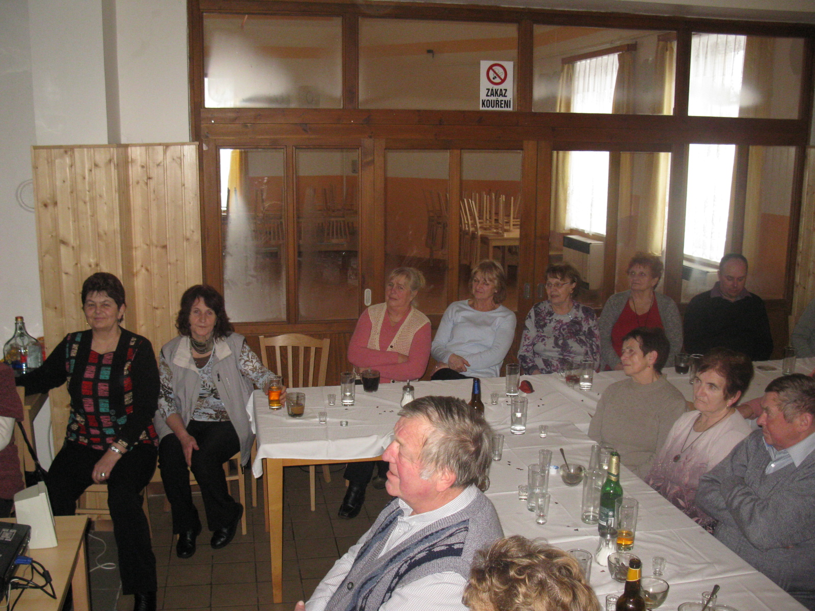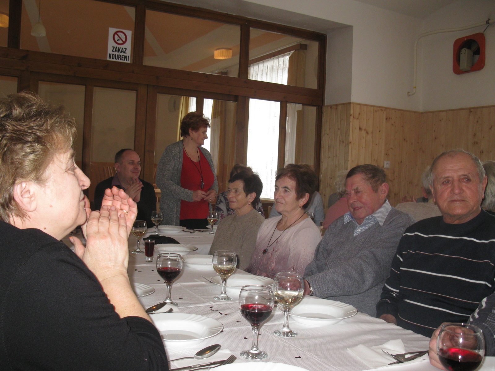 Konec roku jsme oslavili 7.1.2016 nejdříve dobrým obědem, který pro nás naše členky připravily. Následovala zdravice hostů a předsedkyně. Také jsme si promítli, jak jsme v květnu bavili naše hosty. Při volné zábavě nás pobavila harmonika a vozembouch. Celkem se nás sešlo 41 členů a 5 hostů.