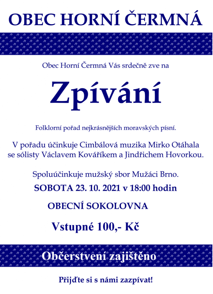 Pozvánka – 23.října 2021 v 18.00 hod. Horní Čermná sokolovna