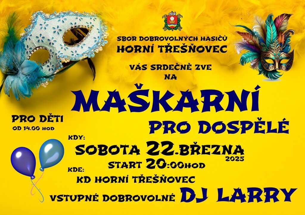 Pozvánka na Maškarní pro dospělé 22.3.2025