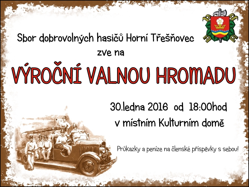 Sbor dobrovolných hasičů Horní Třešňovec zve všechny své členy na