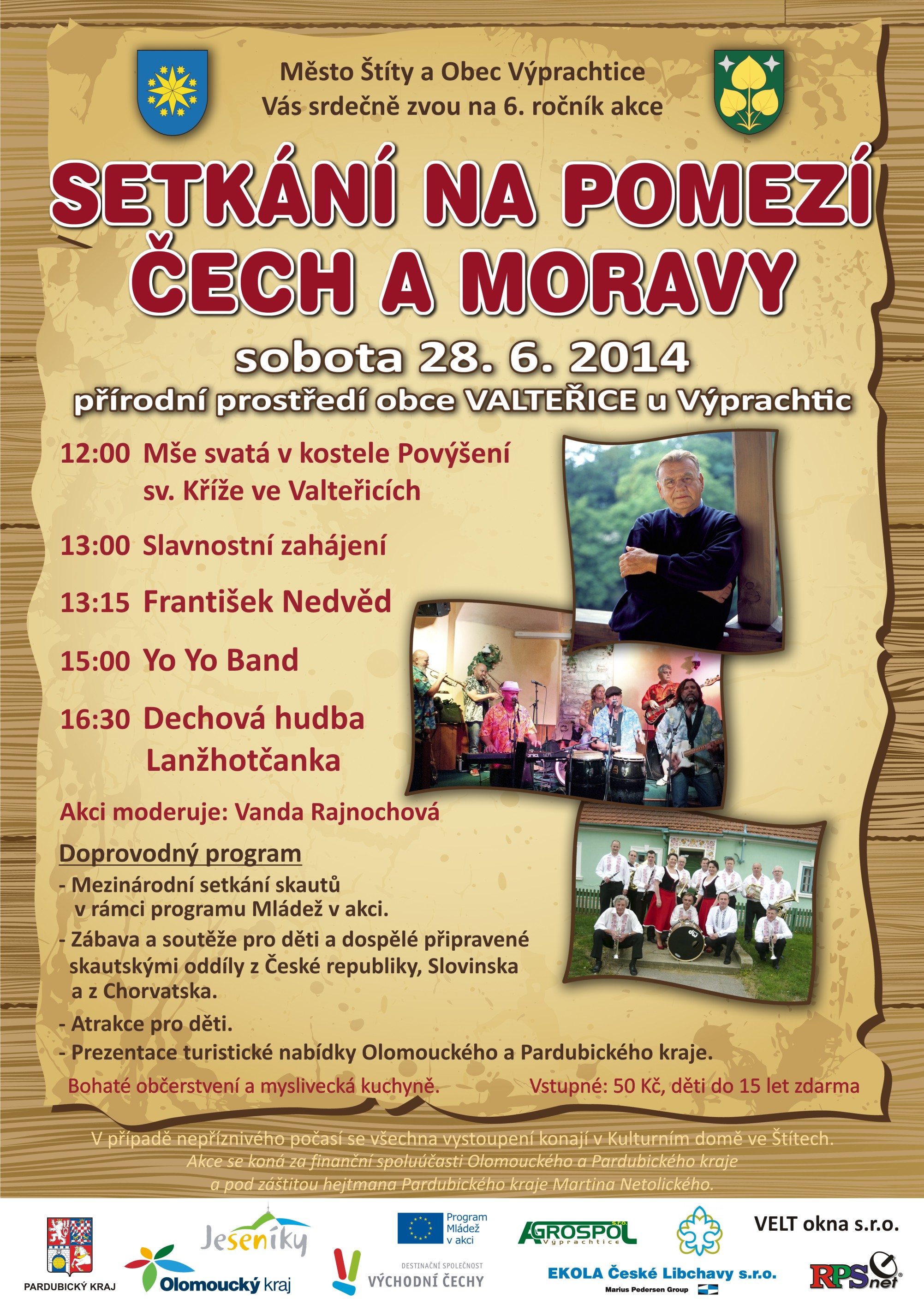 srdečně Vás zveme na SETKÁNÍ NA POMEZÍ ČECH A MORAVY, které se uskuteční v sobotu 27. června 2015 od 12:00 ve Valteřicích u Výprachtic. Letos nám zahraje a zazpívá dechová hudba Mistříňanka, Wabi Daněk a Xindl X.