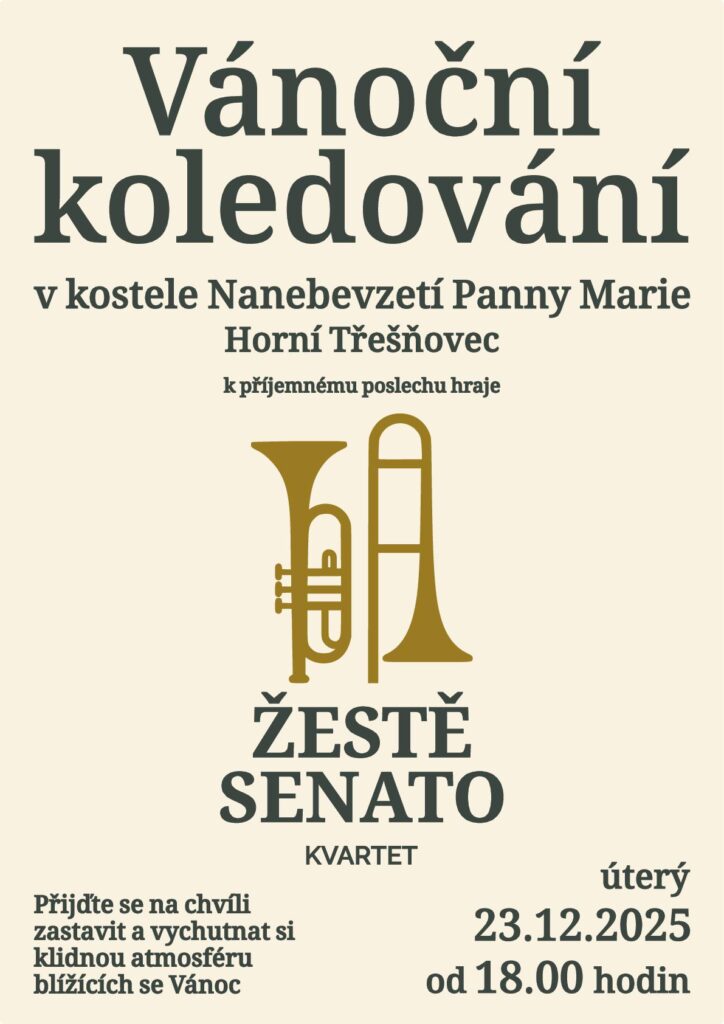 Vánoční koledování v kostele 23.12.2025 od 18 hodin 17 prosince, 2025 napsal(a) Zuzana Mačátová v kategorii Aktuality Zájemci si mohou domů odnést betlémské světlo. Vezměte si s sebou svíčku.