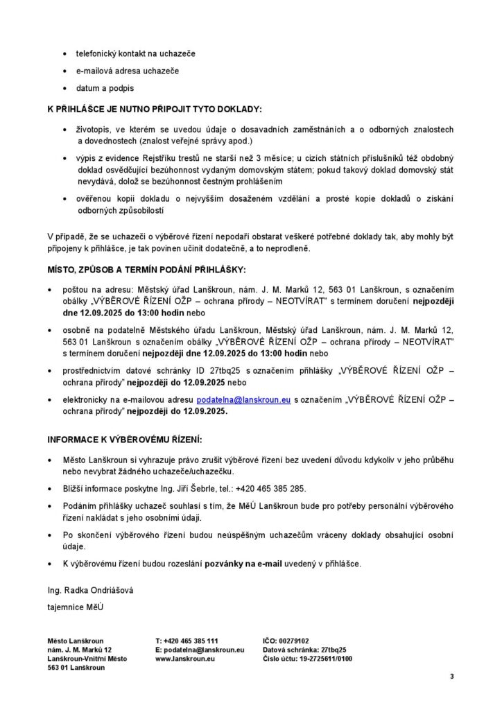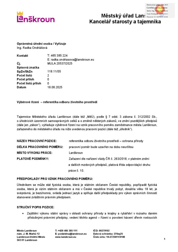 Výběrové řízení – referent/ka odboru životního prostředí 22 srpna, 2025 napsal(a) Zuzana Mačátová v kategorii Aktuality