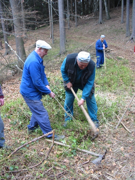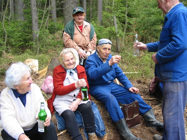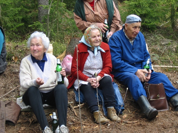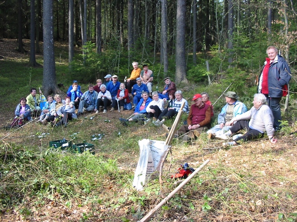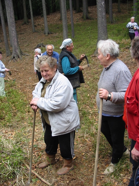 Sešli jsme se po obědě, mladší i dříve narození důchodci, nechyběli ani osmdesátníci. Někteří s sebou přivedli i malé pomocníky, svoje vnoučátka. Sraz byl v lese na Mariánské hoře, kam někteří dorazili pěšky, někteří přijeli autobusem nebo autem.